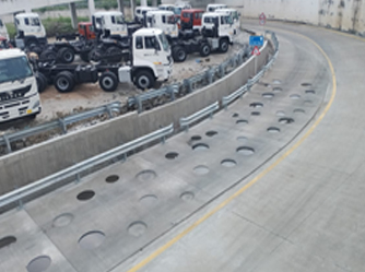 Durability tracks are specially constructed road profiles used to simulate long-term road damage in a short period, allowing OEMs to validate structural strength, suspension performance, weld integrity, mountings, and overall vehicle robustness.